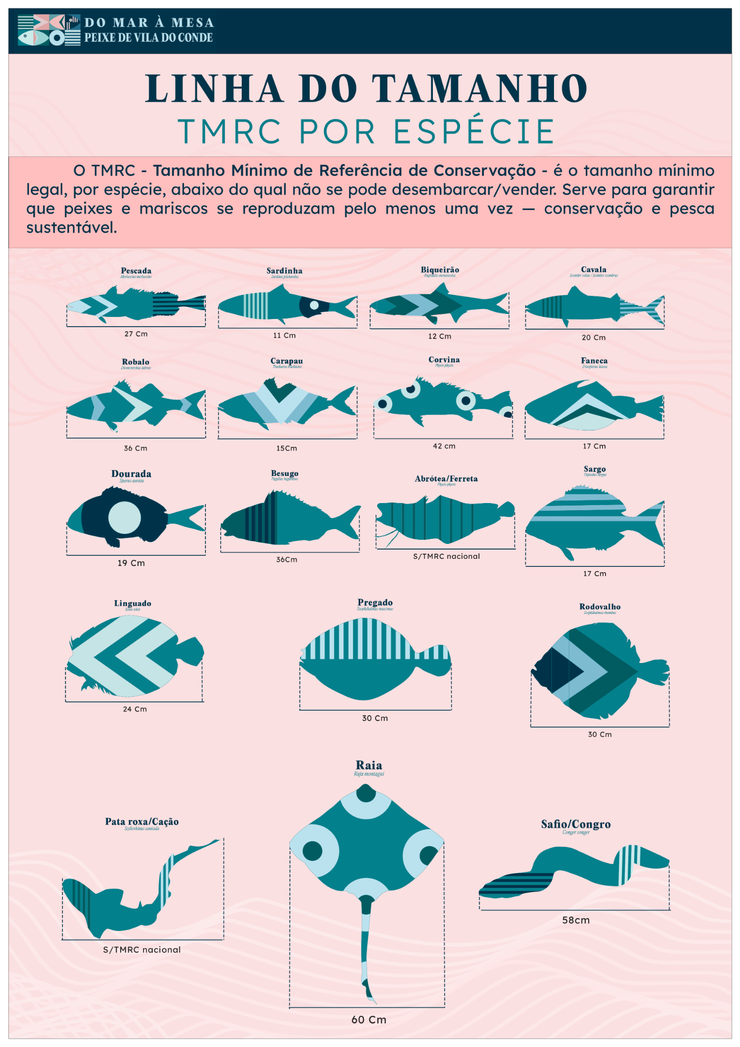TMRC por espécie — tamanhos mínimos de referência de conservação.